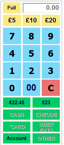 Can press the quick suggestions (£22.45 or £23.00), which will automatically choose the cash pay type.